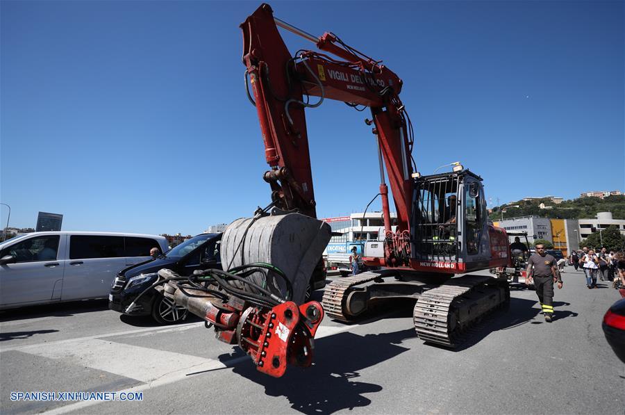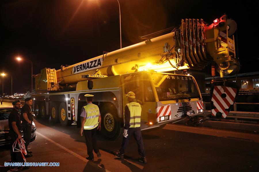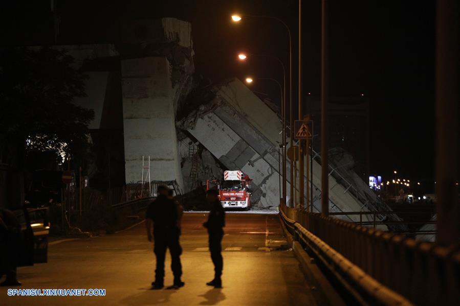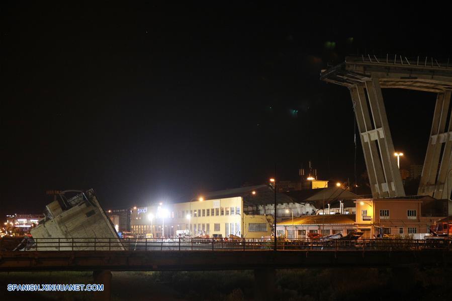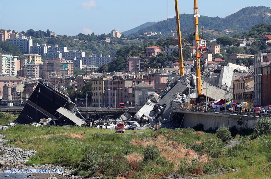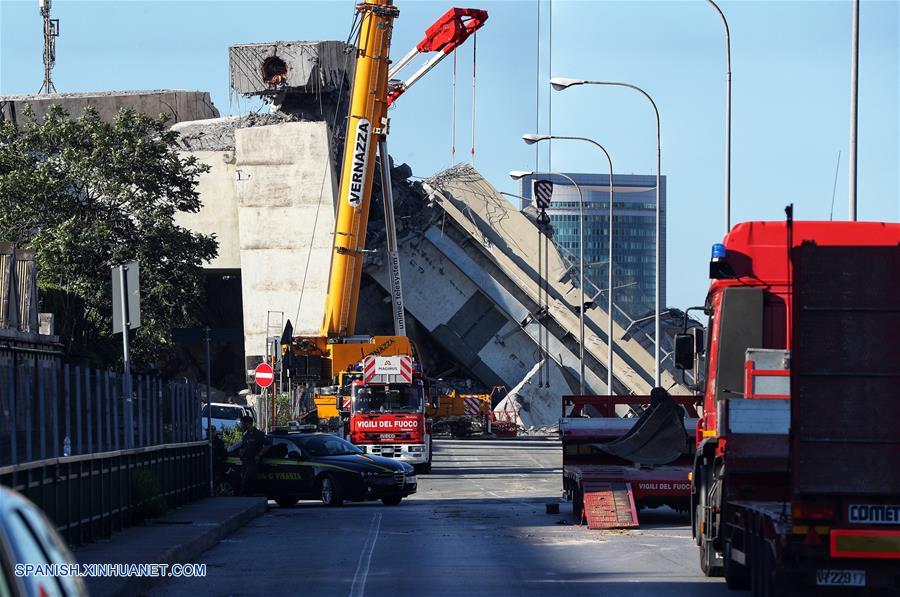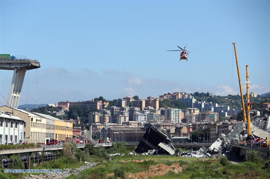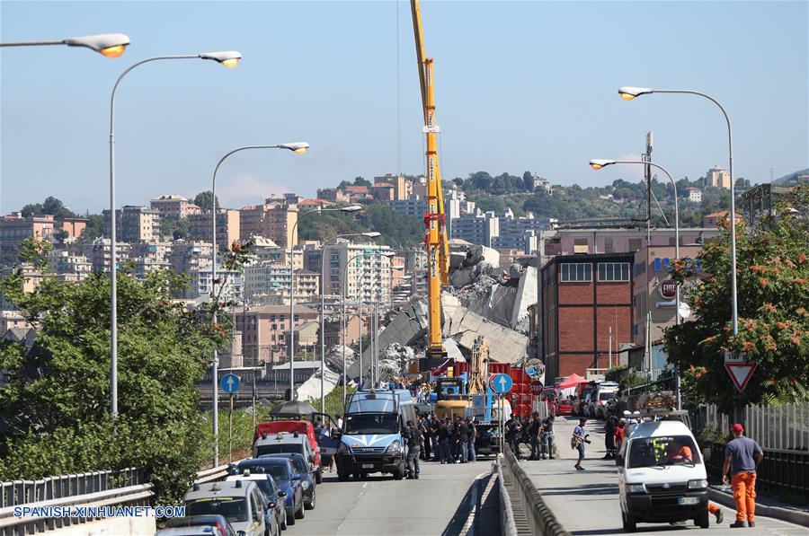 GENOVA, agosto 15, 2018 (Xinhua) -- Rescatistas trabajan en el sitio donde un puente colapsó, en Génova, en el noroeste de Italia, el 15 de agosto de 2018. (Xinhua/Zheng Huansong)