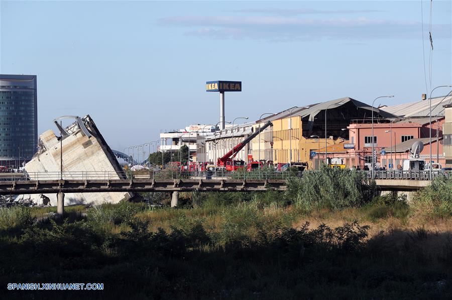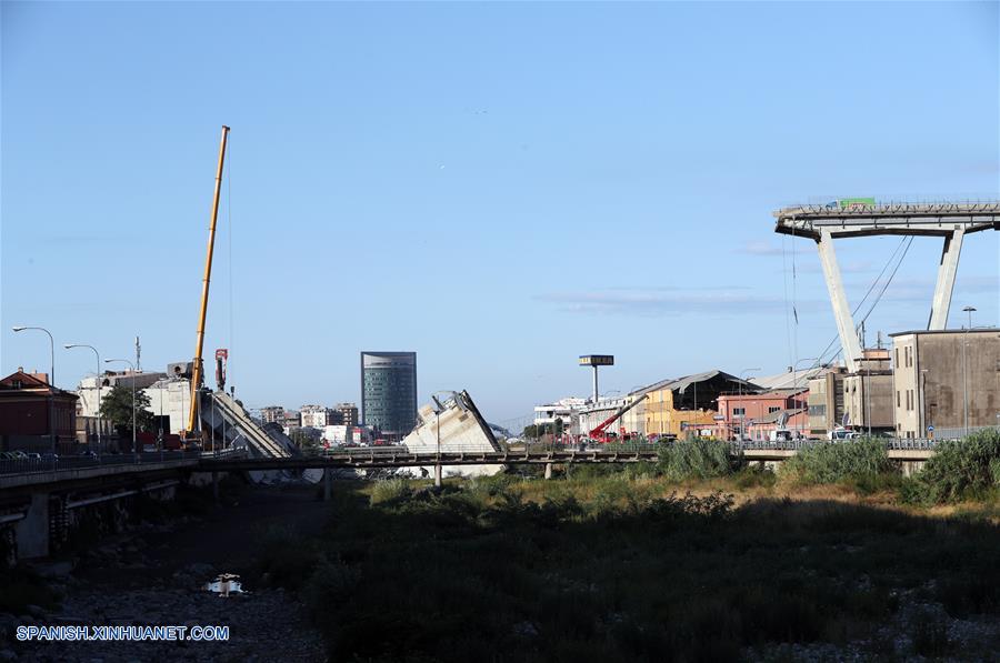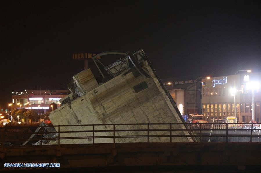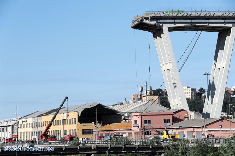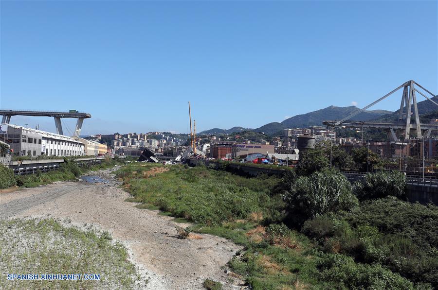 GENOVA, agosto 15, 2018 (Xinhua) -- Vista del sitio donde un puente colapsó, en Génova, en el noroeste de Italia, el 15 de agosto de 2018. (Xinhua/Zheng Huansong)
