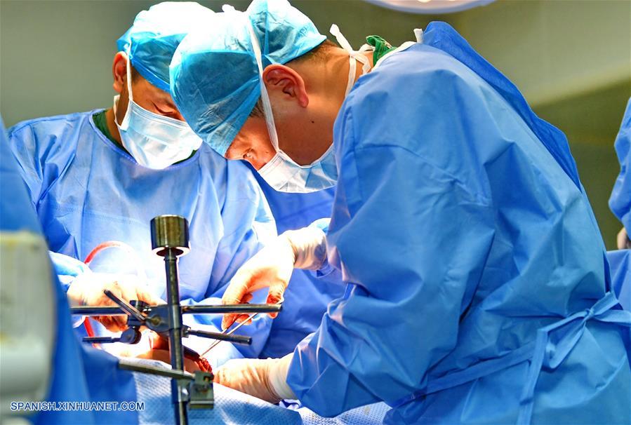 NYINGCHI, agosto 17, 2018 (Xinhua) -- Imagen del 16 de agosto de 2018 del doctor Li Chuanjiang (d) del Hospital de Nanfang de Guangdong y doctor local realizando una operación en el Hospital Popular, en Nyingchi, en la región autónoma del Tíbet, en el suroeste de China. La provincia de Guangdong ha enviado cuatro grupos de personal médico al Hospital Popular de Nyingchi en los últimos cuatro a?os para proporcionar mejores servicios de atención médica a los residentes. (Xinhua/Zhang Rufeng)