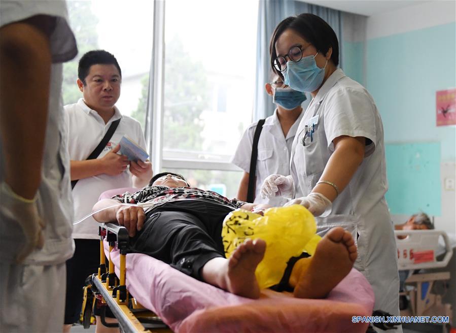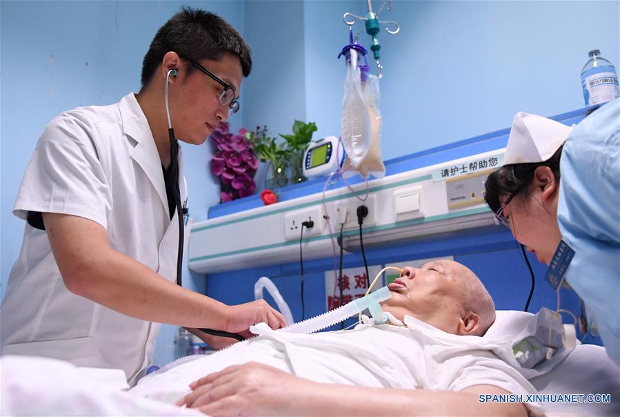 Un doctor examina a un paciente en el Hospital Beijing Tian Tan, en el marco del primer Día de los Trabajadores Médicos de China, en Beijing, capital de China, el 19 de agosto de 2018. (Xinhua/Zhang Chenlin)