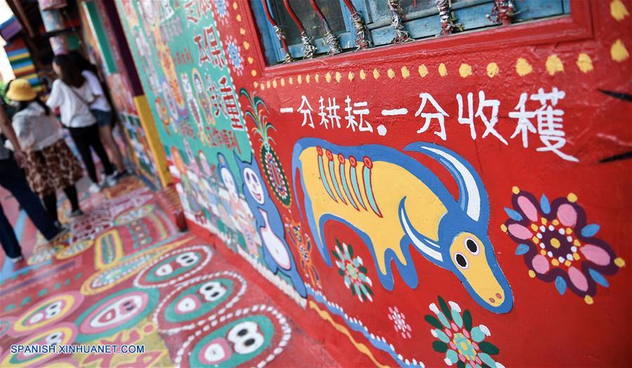 TAICHUNG, agosto 20, 2018 (Xinhua) -- Vista de pinturas en una comunidad residencial llamada "aldea arcoiris" en el distrito Nantun de la ciudad de Taichung, en Taiwán, en el sureste de China, el 20 de agosto de 2018. Las coloridas pinturas en las paredes y pisos de la aldea atraen a muchos turistas. (Xinhua/Xue Yubin)