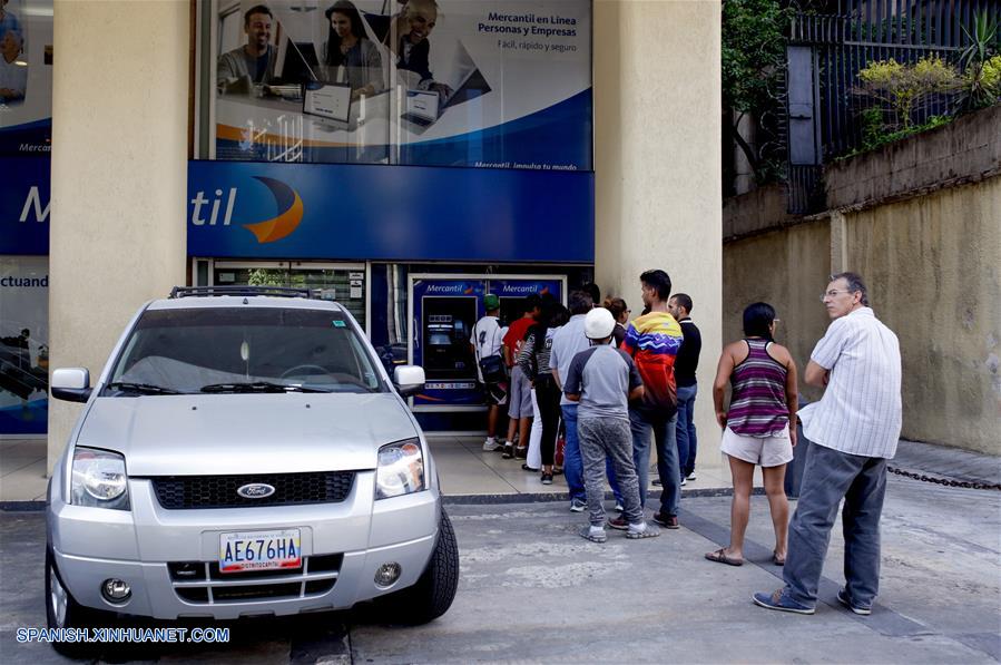 CARACAS, agosto 20, 2018 (Xinhua) -- Personas permanecen en fila para retirar dinero en un cajero automático, en Caracas, Venezuela, el 20 de agosto de 2018. El nuevo cono monetario entró el lunes en vigencia en Venezuela, denominado bolívar soberano, el cual supone una eliminación de cinco ceros respecto al anterior, el bolívar fuerte. El presidente venezolano, Nicolás Maduro, decretó el lunes día no laborable para ajustar los detalles de la transición y adecuar las plataformas bancarias del país, razón por lo cual buena parte de la banca electrónica se encuentra aún sin funcionar. (Xinhua/Boris Vergara)