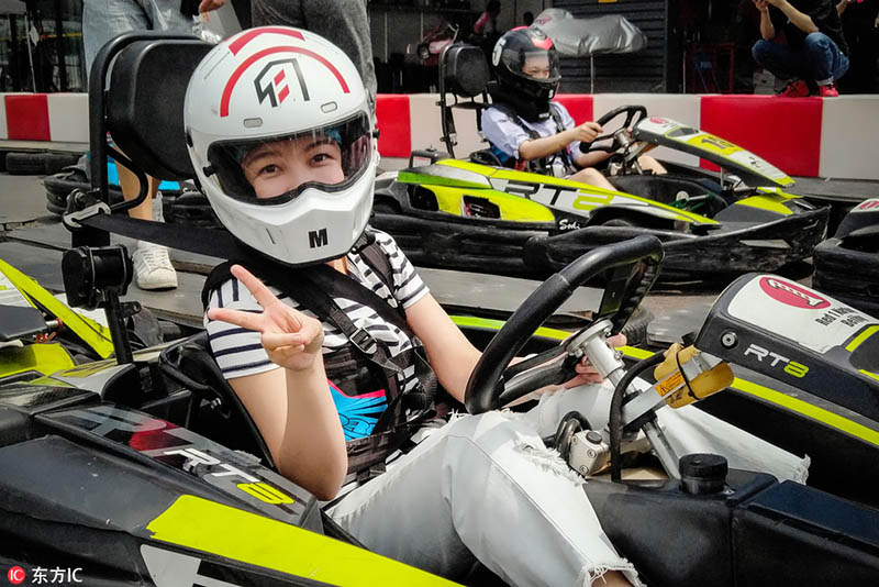 Para mantenerse en forma, Zhou Xu practica Fórmula 1 con sus amigos. [Foto: IC]