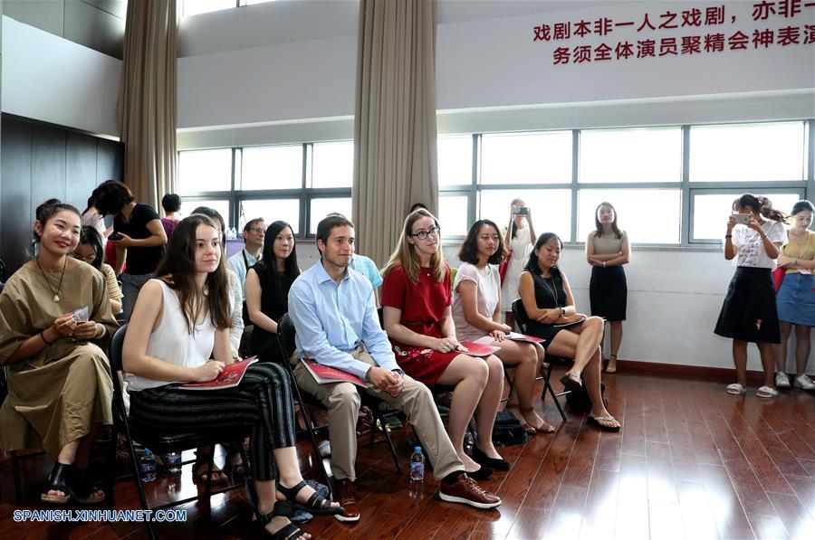 SHANGHAI, agosto 20, 2018 (Xinhua) -- Estudiantes de la Universidad de Princeton asisten a la ceremonia de inauguración de un programa de inmersión para que estudiantes internacionales aprendan sobre la Opera de Pekín y la estética china en Shanghai, en el este de China, el 20 de agosto de 2018. (Xinhua/Liu Ying)