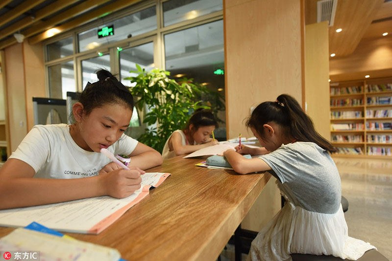 La gente lee libros en la Biblioteca Lago Oeste, una biblioteca de autoservicio en Hangzhou, capital de la provincia oriental de Zhejiang, el 20 de agosto de 2018. [Foto / IC]