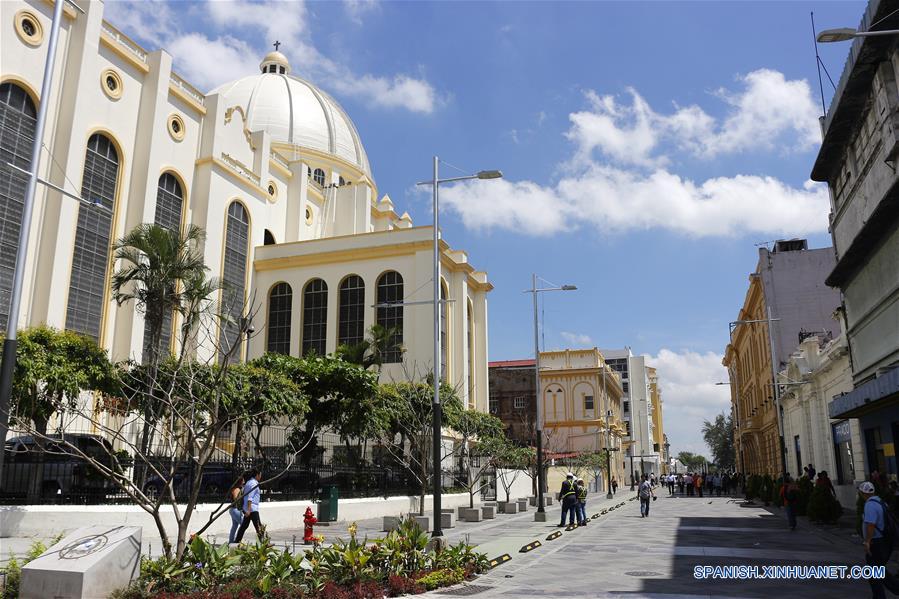 Personas caminan en una calle del centro histórico de San Salvador, El Salvador, el 21 de agosto de 2018. La República Popular China y la República de El Salvador firmaron el martes en Beijing un comunicado conjunto sobre el establecimiento de relaciones diplomáticas. El comunicado fue firmado por el consejero de Estado y ministro de Relaciones Exteriores chino, Wang Yi, y el ministro de Relaciones Exteriores salvadore?o, Carlos Castaneda.