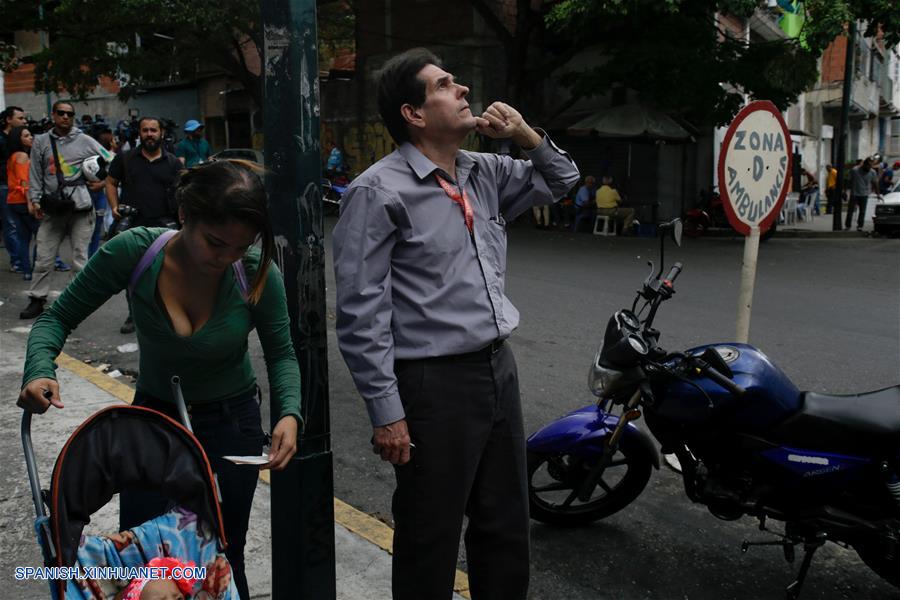 Un hombre observa el edificio del antiguo Centro Financiero Confinanzas, en Caracas, capital de Venezuela, el 22 de agosto de 2018. El ministro de Interior de Venezuela, Néstor Reverol, dijo que, en Caracas, el antiguo Centro Financiero Confinanzas, un edificio de 45 pisos, no habitado y en estado de abandono, "presentó una inclinación de 25 por ciento en los últimos 5 pisos" tras el sismo del martes, y dijo que los organismos competentes están atendiendo la situación. (Xinhua/Boris Vergara)