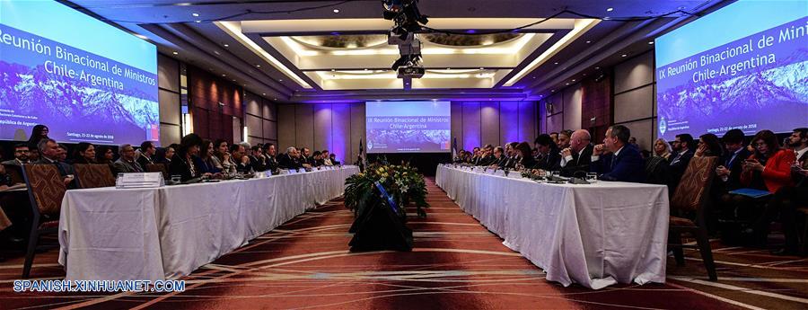SANTIAGO, agosto 22, 2018 (Xinhua) -- Delegados participan durante la inauguración de la IX Reunión Binacional de Ministros de Chile y Argentina, en Santiago, capital de Chile, el 22 de agosto de 2018. Chile y Argentina firmaron el miércoles una batería de acuerdos en materia de infraestructura, facilitación fronteriza, conectividad e integración económica, entre otros asuntos, con el propósito de reforzar la relación entre las naciones vecinas, en el marco de la IX Reunión Binacional de Ministros de Chile y Argentina. (Xinhua/Jorge Villegas)