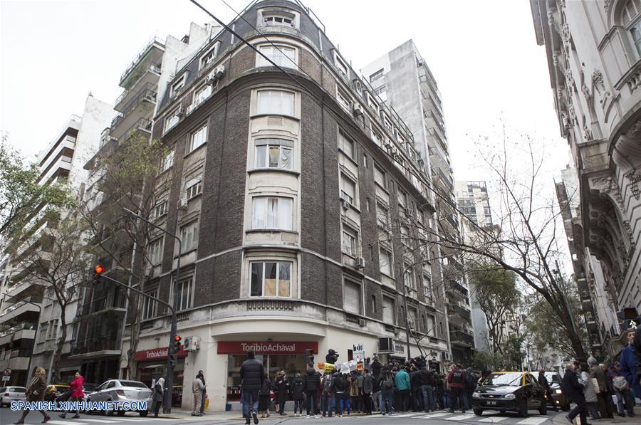 BUENOS AIRES, agosto 23, 2018 (Xinhua) -- Representantes de los medios de comunicación permanecen frente al edificio donde vive la ex presidenta y actual senadora argentina, Cristina Fernández, en Buenos Aires, capital de Argentina, el 23 de agosto de 2018. Efectivos de la Policía Federal de Argentina realizaban el jueves allanamientos en tres domicilios de la ex presidenta argentina Cristina Fernández (2007-2015) por una orden judicial en el marco de una investigación por el presunto pago de sobornos de parte de empresarios a ex funcionarios. (Xinhua/Martín Zabala)