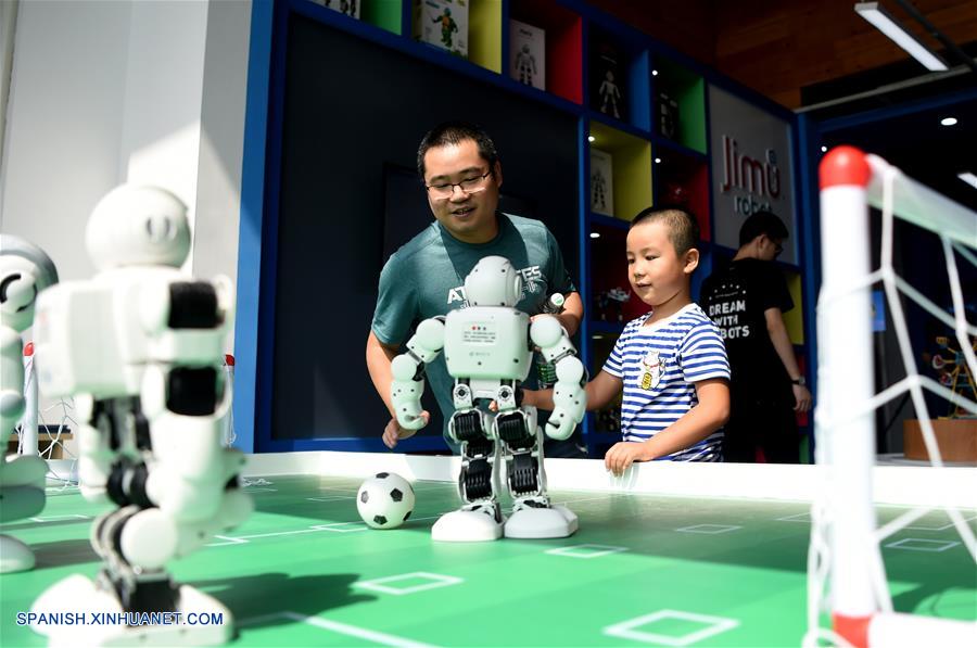 CHONGQING, agosto 23, 2018 (Xinhua) -- Personas observan los objetos exhibidos de las plataformas industriales de Internet exhibidos en la primera Exposición China Inteligente, en la municipalidad de Chongqing, en el suroeste de China, el 23 de agosto de 2018. La primera edición de la Exposición China Inteligente fue inaugurada el jueves en la municipalidad suroccidental de Chongqing y atrajo a más de 500 empresas nacionales e internacionales como expositoras y a más de 100 huéspedes extranjeros de 28 países y regiones. La exposición, con el tema "Tecnología inteligente: Empoderar la economía, enriquecer la vida", se llevará a cabo de jueves a sábado enfocándose en nuevos productos, tecnología y modos en el desarrollo global de macrodatos y las industrias inteligentes, de acuerdo con el comité organizador. (Xinhua/Tang Yi)