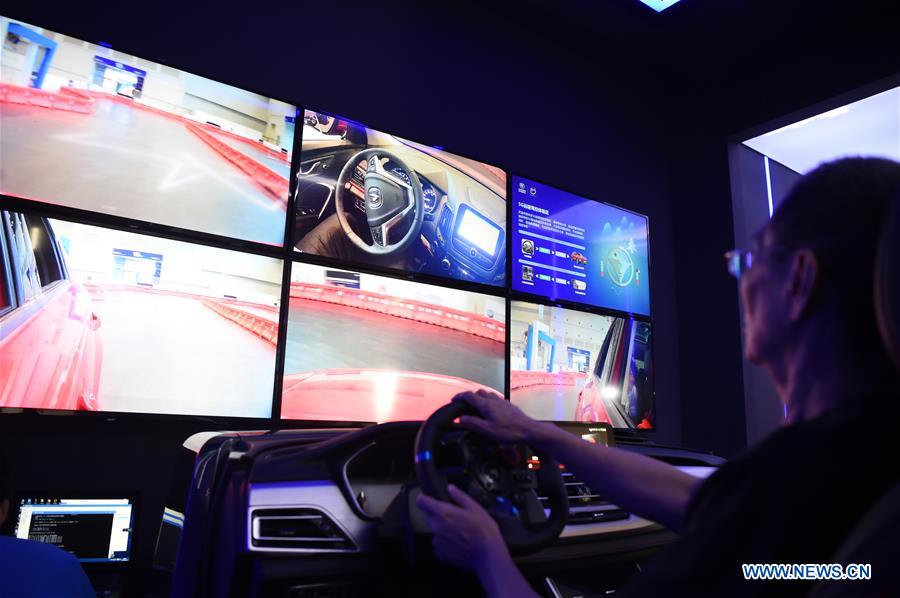 Un visitante prueba un sistema de conducción remota dentro de la ciudad inteligente de la primera edición de la Exposición China Inteligente inaugurada en Chongqing. La ciudad inteligente, una zona especial de exhibición que ocupa 30.000 metros cuadrados, abrió al público este jueves para mostrar la vida cotidiana asistida por la tecnología de punta. La muestra estará abierta durante todo un a?o. 23 de agosto del 2018. (Foto: Xinhua/ Tang Yi)