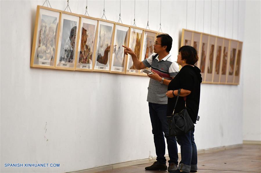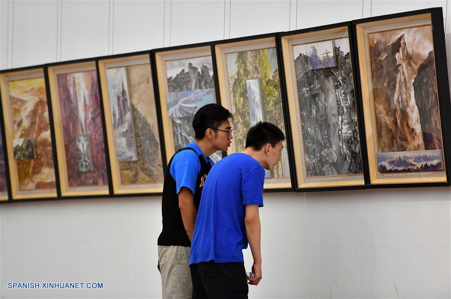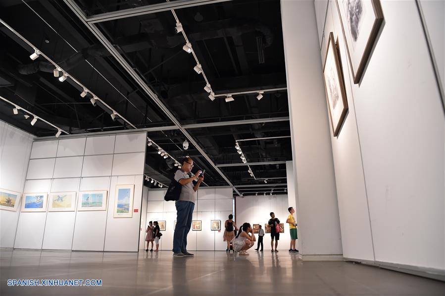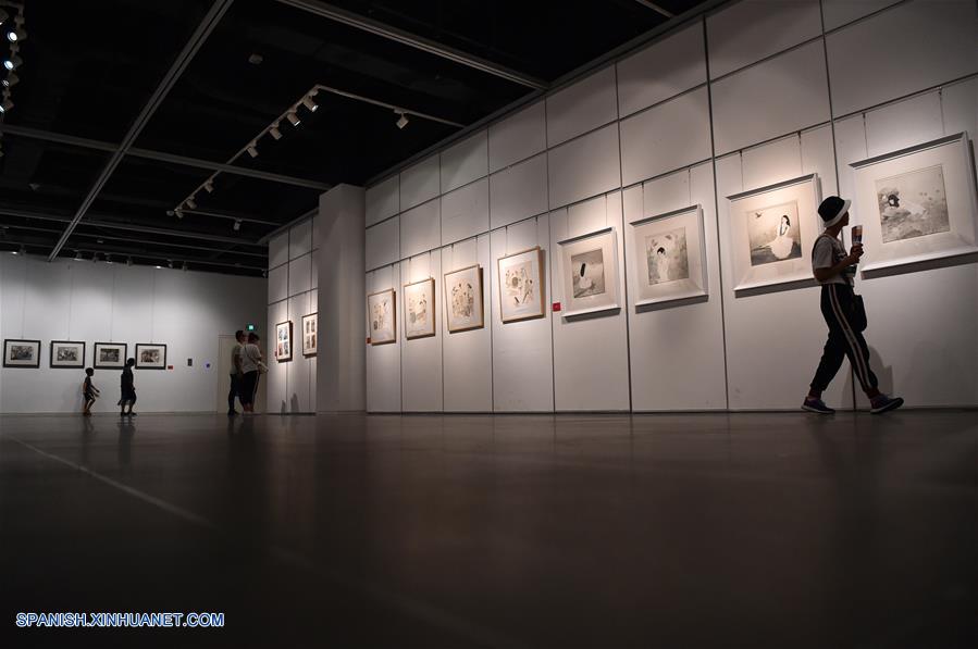 TIANJIN, agosto 22, 2018 (Xinhua) -- Visitantes observan las obras exhibidas durante una exposición de historietas en el Museo de Arte de Tianjin, en Tianjin, en el norte de China, el 22 de agosto de 2018. (Xinhua/Li Ran)