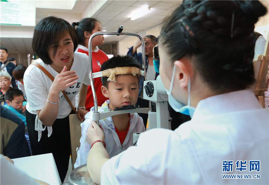 Una oftalmóloga revisa a un ni?o. [Foto: Xinhua]