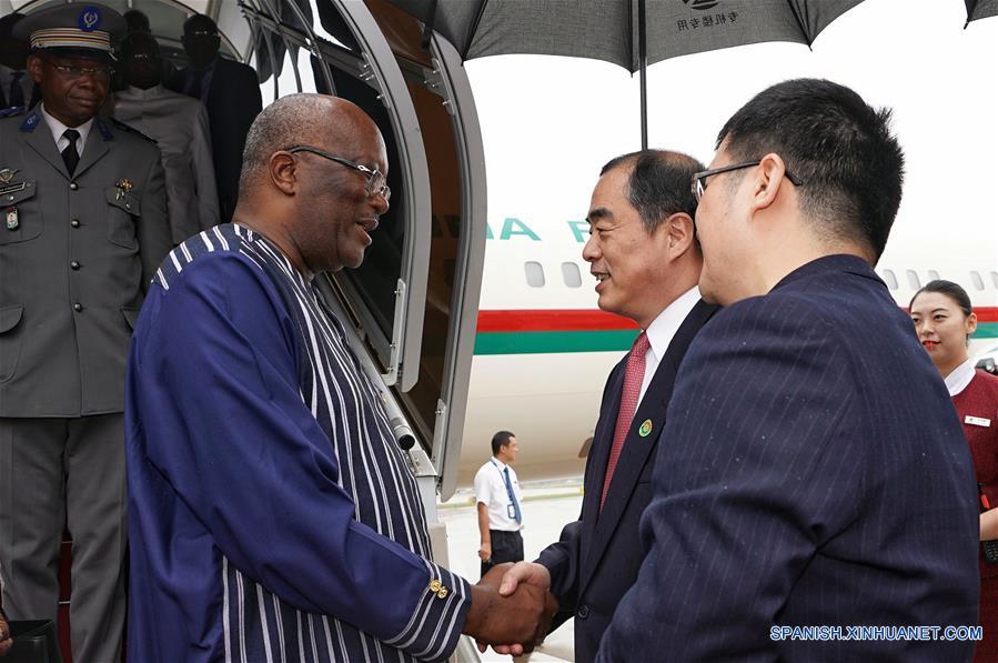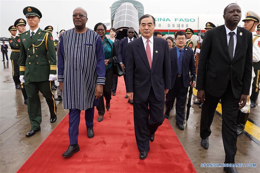 BEIJING, agosto 30, 2018 (Xinhua) -- El presidente de Burkina Faso, Roch Marc Christian Kabore (i-frente), llega a Beijing, capital de China, el 30 de agosto de 2018. Kabore se encuentra en Beijing para una visita de Estado y también asistirá a la Cumbre de Beijing del Foro de Cooperación China-Africa (FOCAC). (Xinhua/Xing Guangli)