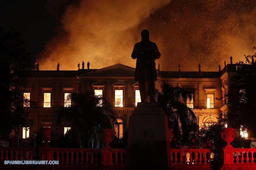 RIO DE JANEIRO, septiembre 2, 2018 (Xinhua) -- Fuego emana del Museo Nacional de Brasil, en Río de Janeiro, Brasil, el 2 de septiembre de 2018. Un enorme incendio en la noche de este domingo devora el Museo Nacional de Río de Janeiro, la más antigua institución científica de Brasil, con más de 20 millones de piezas. El fuego empezó cuando el museo ya había cerrado las puertas al público por causas por el momento desconocidas. (Xinhua/Alexandre Brum/AGENCIA O DIA/ESTADAO CONTEUDO/AGENCIA ESTADO)