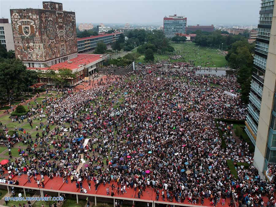 CIUDAD DE MEXICO, septiembre 5, 2018 (Xinhua) -- Estudiantes participan en una marcha en Ciudad Universitaria, en la Ciudad de México, capital de México, el 5 de septiembre de 2018. Miles de jóvenes, padres de familia, académicos y trabajadores de diversas escuelas y facultades de la Universidad Nacional Autónoma de México (UNAM) y de otras instituciones salieron el miércoles a las calles para exigir "paz y frenar la violencia" contra estudiantes. (Xinhua/Francisco Ca?edo)
