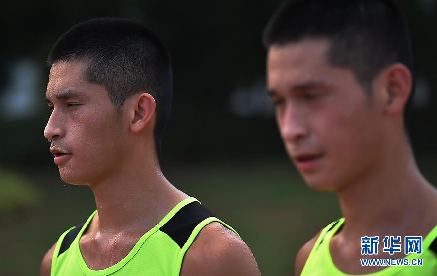 La imagen muestra a los hermanos sudando después de una sesión de entrenamiento: Lu Wenxuan (izquierda) y Lu Wenkai (foto del 16 de agosto). Agencia de Noticias Xinhua, reportero Li Yuze.