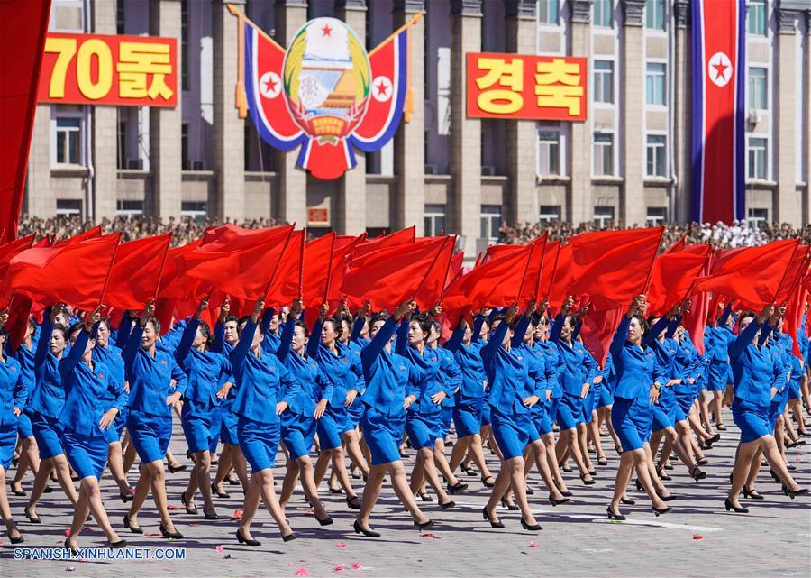 PYONGYANG, septiembre 9, 2018 (Xinhua) -- Personas marchan durante un desfile para celebrar el 70 aniversario de la fundación de la República Popular Democrática de Corea (RPDC), en Pyongyang, RPDC, el 9 de septiembre de 2018. (Xinhua/Xing Guangli)