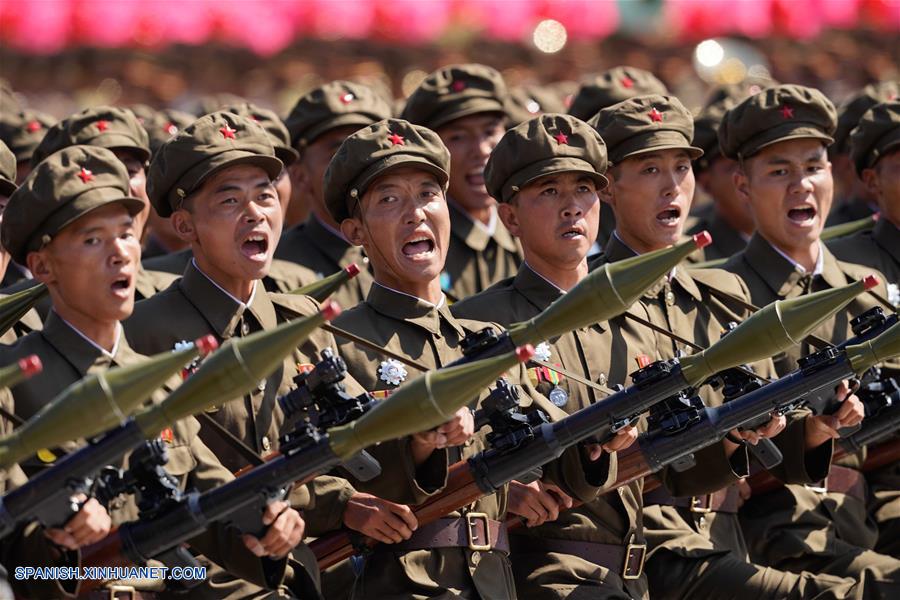 PYONGYANG, septiembre 9, 2018 (Xinhua) -- Soldados marchan durante un desfile para celebrar el 70 aniversario de la fundación de la República Popular Democrática de Corea (RPDC) en Pyongyang, RPDC, el 9 de septiembre de 2018. (Xinhua/Xing Guangli)