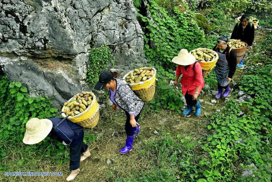 HUBEI, septiembre 11, 2018 (Xinhua) -- Una agricultora recolecta melones, en el condado de Xuan'en, Enshi, provincia de Hubei, en el centro de China, el 11 de septiembre de 2018. (Xinhua/Wang Jun)