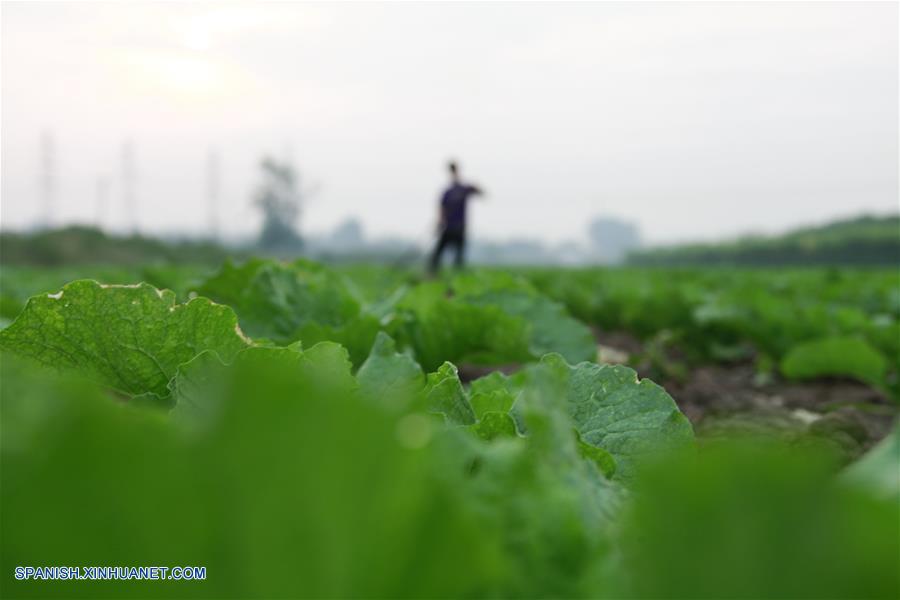 HEBEI, septiembre 11, 2018 (Xinhua) -- Un agricultor arregla el repollo en un campo, en la villa de Mafang de la ciudad de Tangshan, provincia de Hebei, en el norte de China, el 11 de septiembre de 2018. (Xinhua/Liu Mancang)