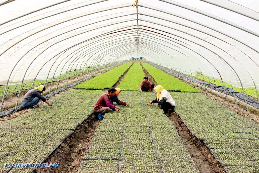 JIANGSU, septiembre 11, 2018 (Xinhua) -- Agricultores arreglan las plántulas de repollo chino en un invernadero, en la ciudad de Yangzhou, provincia de Jiangsu, en el este de China, el 11 de septiembre de 2018. (Xinhua/Shen Dongbing)