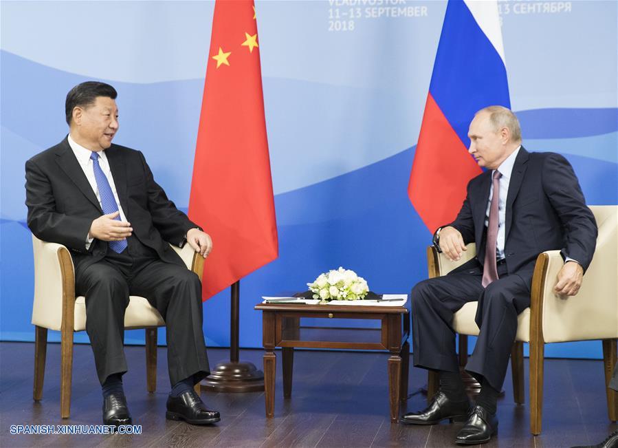 El presidente de China, Xi Jinping (i) sostiene conversaciones con su homólogo de Rusia, Vladimir Putin, en Vladivostok, Rusia, el 11 de septiembre de 2018. (Xinhua/Huang Jingwen)