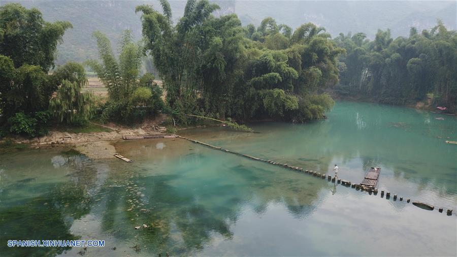 GUIZHOU, septiembre 12, 2018 (Xinhua) -- Vista aérea del paisaje del punto escénico de Daxiaojing, en el condado de Luodian, provincia de Guizhou, en el suroeste de China, el 12 de septiembre de 2018. (Xinhua/Ou Dongqu)