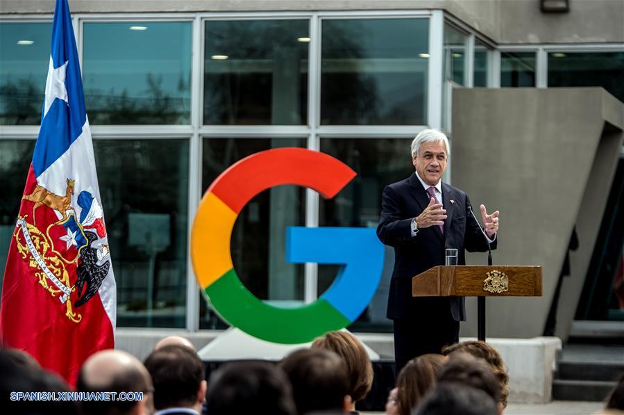 Imagen cedida por la Presidencia de Chile, del presidente chileno, Sebastián Pi?era, pronunciando un discurso durante el anuncio de la expansión de la Central de Datos de la empresa tecnológica Google, en la comuna de Quilicura, en el norte de Santiago, Chile, el 12 de septiembre de 2018. El presidente de Chile, Sebastián Pi?era, celebró el miércoles la expansión de la central de datos que la empresa tecnológica Google tiene en Chile, la única en América Latina. (Xinhua/Marcelo Segura/Presidencia de Chile)