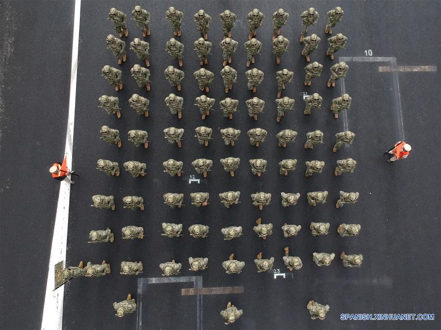 CIUDAD DE MEXICO, septiembre 12, 2018 (Xinhua) -- Imagen tomada con un dron de integrantes de la Marina-Armada de México participando durante el pase de revista del Contingente Naval que participará en el Desfile Cívico Militar por el 208 Aniversario del Inicio de la Guerra de Independencia de México, en la Ciudad de México, capital de México, el 12 de septiembre de 2018. (Xinhua/Francisco Ca?edo)