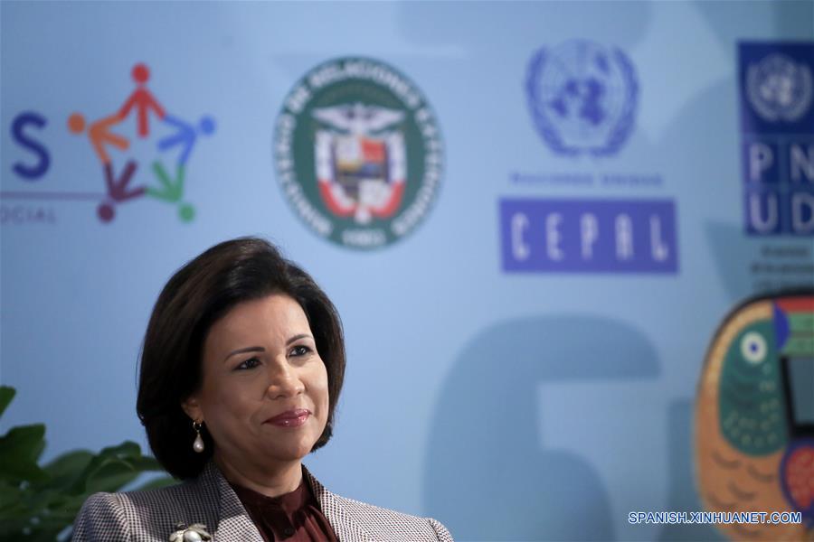 La vicepresidenta de República Dominicana, Margarita Cede?o, participa durante el X Foro Ministerial para El Desarrollo de América Latina y el Caribe bajo el lema "Alianzas para la disminución de desigualdades estructurales en el marco de los Objetivos de Desarrollo Sostenible (ODS)" en un hotel en la Ciudad de Panamá, capital de Panamá, el 12 de septiembre de 2018. (Xinhua/Mauricio Valenzuela)
