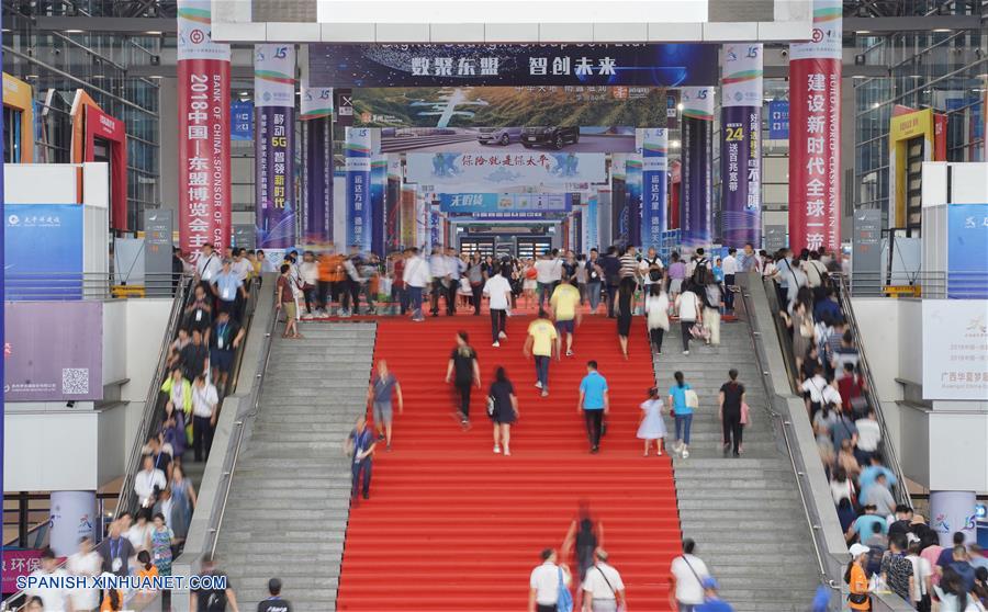GUANGXI, septiembre 12, 2018 (Xinhua) -- Personas visitan la 15 Exposición China-ASEAN (Asociación de Naciones del Sudeste Asiático), en Nanning, capital de la Región Autónoma Zhuang de Guangxi, en el sur de China, el 12 de septiembre de 2018. La 15 Exposición China-ASEAN se inauguró el miércoles en la ciudad sure?a china de Nanning. (Xinhua/Cai Yang)