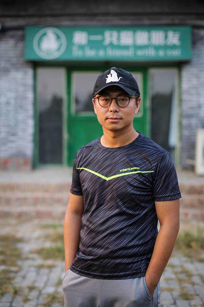 Han Bing, líder del paraíso de los gatos, organiza a más personas para cuidar a los gatos. [Foto de Tang Tao para chinadaily.com.cn]