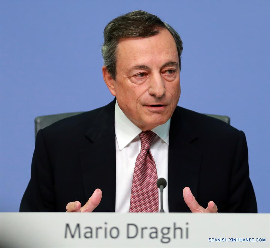 El presidente del Banco Central Europeo (BCE), Mario Draghi, asiste a una conferencia de prensa en la sede del BCE, en Frankfurt, Alemania, el 13 de septiembre de 2018. El Banco Central Europeo (BCE) decidió el jueves mantener sin cambio las tasas de interés claves para la zona del euro. (Xinhua/Luo Huanhuan)