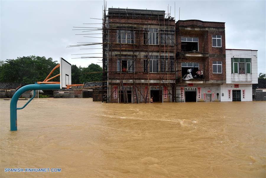 YANGCHUN, septiembre 17, 2018 (Xinhua) -- Vista de la inundada villa Pingxi de la ciudad de Yangchun, provincia de Guangdong, en el sur de China, el 17 de septiembre de 2018. Una inundación causada por la lluvia golpeó Yangchun debido a la influencia del súper tifón Mangkhut. (Xinhua/Zhou Ke)