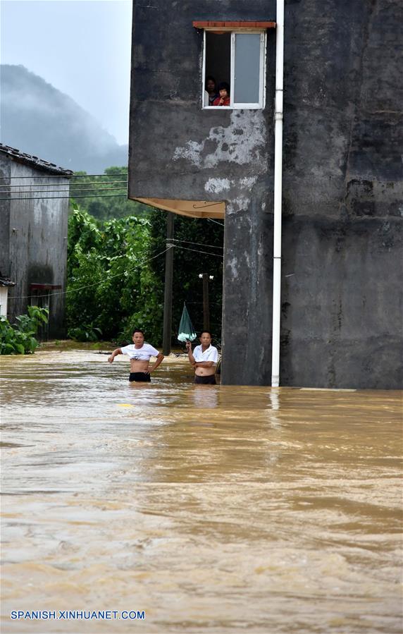 YANGCHUN, septiembre 17, 2018 (Xinhua) -- Vista de la inundada villa Huwei de la ciudad de Yangchun, provincia de Guangdong, en el sur de China, el 17 de septiembre de 2018. Una inundación causada por la lluvia golpeó Yangchun debido a la influencia del súper tifón Mangkhut. (Xinhua/Zhou Ke)