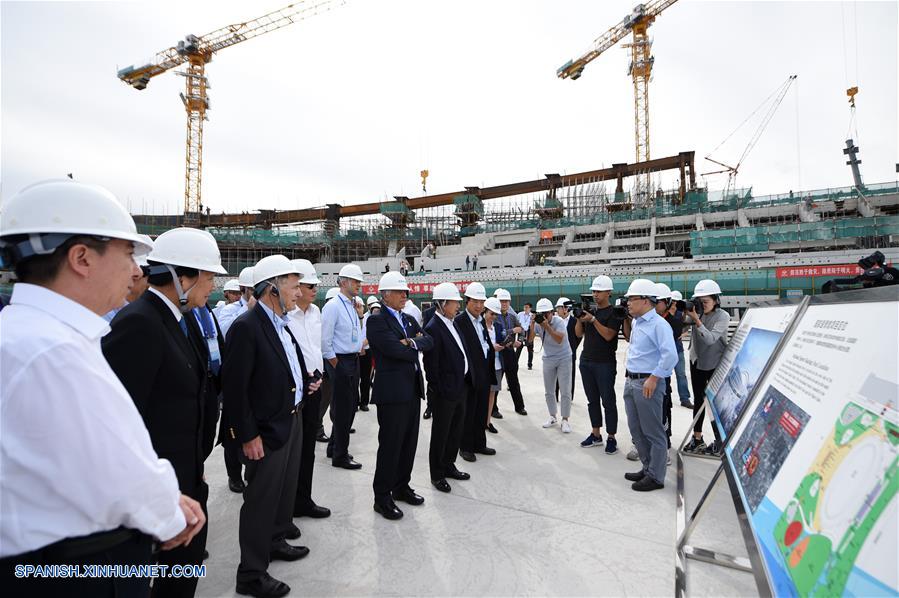BEIJING, septiembre 17, 2018 (Xinhua) -- Miembros de la Comisión de Coordinación del Comité Olímpico Internacional (COI) escuchan la presentación del Estadio Nacional de Patinaje de Velocidad durante su tercer viaje a China para revisar los preparativos de los Juegos Olímpicos de Invierno Beijing 2022, en Beijing, capital de China, el 17 de septiembre de 2018. (Xinhua/Ju Huanzong)