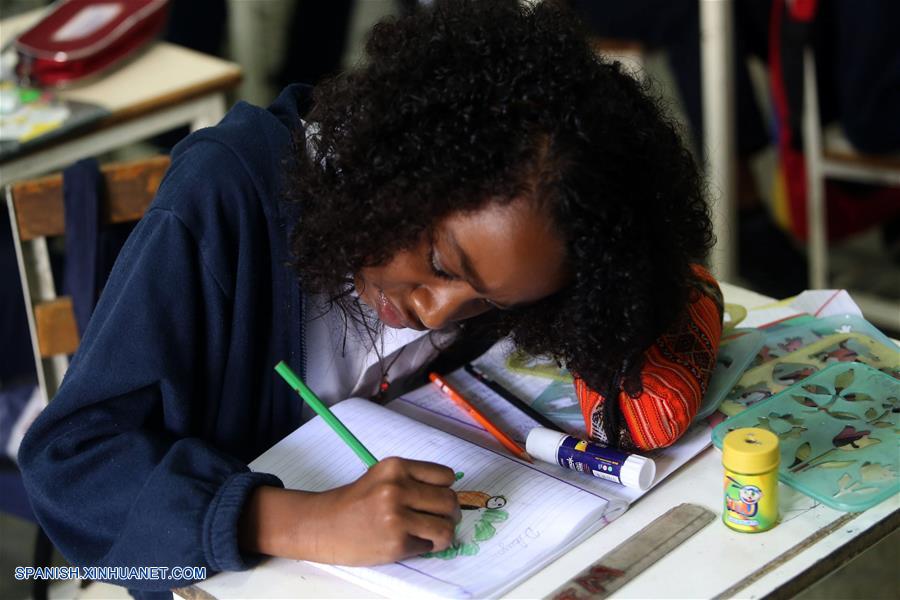 CARACAS, septiembre 17, 2018 (Xinhua) -- Una estudiante realiza un dibujo durante una clase, en el Colegio Experimental Venezuela, en Caracas, Venezuela, el 17 de septiembre de 2018. El presidente de Venezuela, Nicolás Maduro, saludó el lunes el comienzo del período escolar 2018-2019 que inician más de 7,6 millones de estudiantes, y deseó "el mayor de los éxitos" a los alumnos que regresan a clases luego de dos meses de vacaciones. (Xinhua/Ricardo Herdenez/AVN)