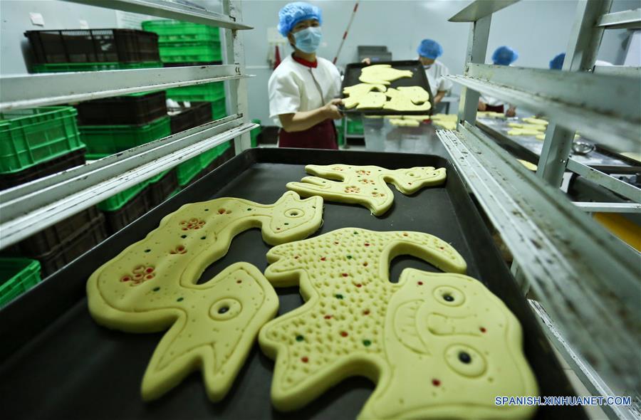 Cocineros preparan pasteles de luna tradicionales en un taller de procesamiento de alimentos en Zhangye, en la provincia de Gansu, en el noroeste de China, el 18 de septiembre de 2018. La elaboración de pasteles de luna previo al Festival de Medio Oto?o es una tradición de hace 1000 a?os en Zhangye. (Xinhua/Wang Jiang)