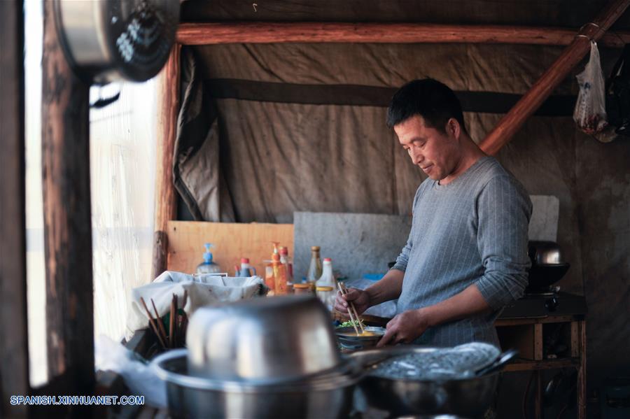 GENHE, septiembre 19, 2018 (Xinhua) -- Imagen del 18 de septiembre de 2018 del guardabosques Wang Liang preparando el almuerzo en la Finca Forestal Yue'anli de la oficina forestal de Genhe en las monta?as Gran Khingan de la Región Autónoma de Mongolia Interior, en el norte de China. Los empleados de la Finca Forestal Yue'anli son responsables de la conservación y el trabajo de cría de renos en China. (Xinhua/Yu Yang)