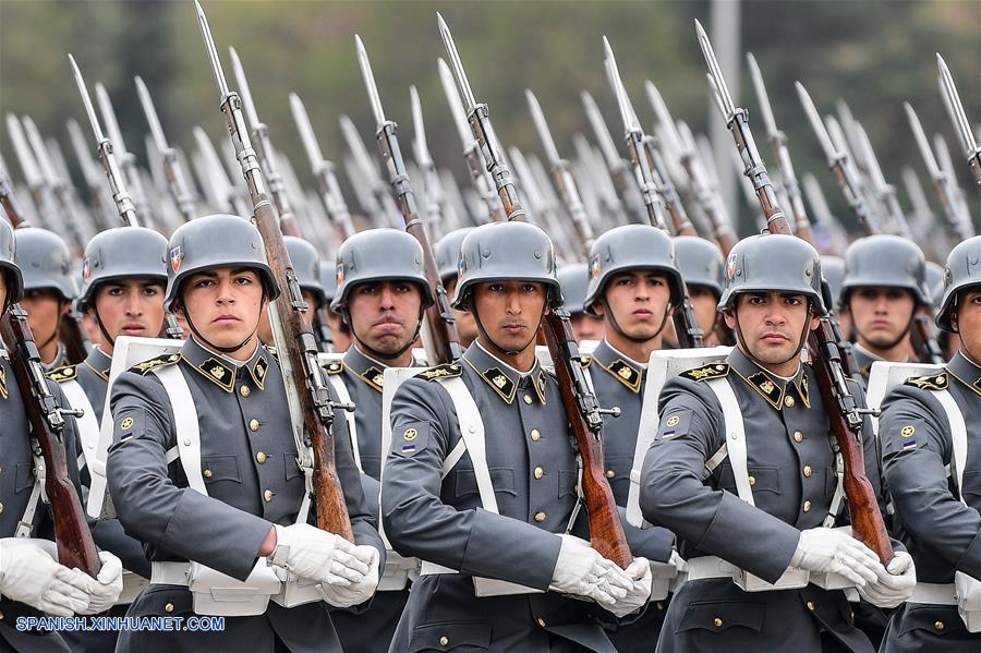 SANTIAGO, septiembre 19, 2018 (Xinhua) -- Soldados chilenos participan durante la Gran Parada Militar en conmemoración del Día de las Glorias del Ejército, en el Parque O'Higgins, en Santiago, capital de Chile, el 19 de septiembre de 2018. El presidente de Chile, Sebastián Pi?era, presidió el miércoles la tradicional Parada Militar en la que unos 9,000 efectivos de todas las unidades castrenses marcharon para conmemorar el Día de las Glorias del Ejército chileno, que en este 2018 destacó por el protagonismo de las mujeres uniformadas. (Xinhua/Jorge Villegas)
