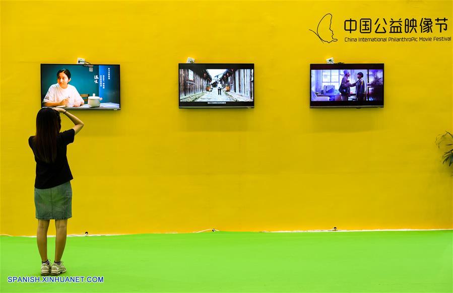 GUANGDONG, septiembre 20, 2018 (Xinhua) -- Una visitante observa videos sobre beneficencia mostrados en la Sexta Feria de la Beneficencia de China (CCF, por sus siglas en inglés), en Shenzhen, provincia de Guangdong, en el sur de China, el 20 de septiembre de 2018. Centrándose en el alivio de la caridad, el evento de tres días de duración comenzó el jueves en el Centro de Convenciones y Exposiciones de Shenzhen. (Xinhua/Mao Siqian)