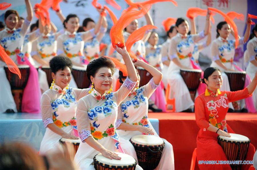 ANHUI, septiembre 24, 2018 (Xinhua) -- Imagen del 23 de septiembre de 2018 de personas realizando un espectáculo para celebrar el Festival de Medio Oto?o y el próximo Día Nacional de China, en Bozhou, provincia de Anhui, en el este de China. (Xinhua/Zhang Yanlin)