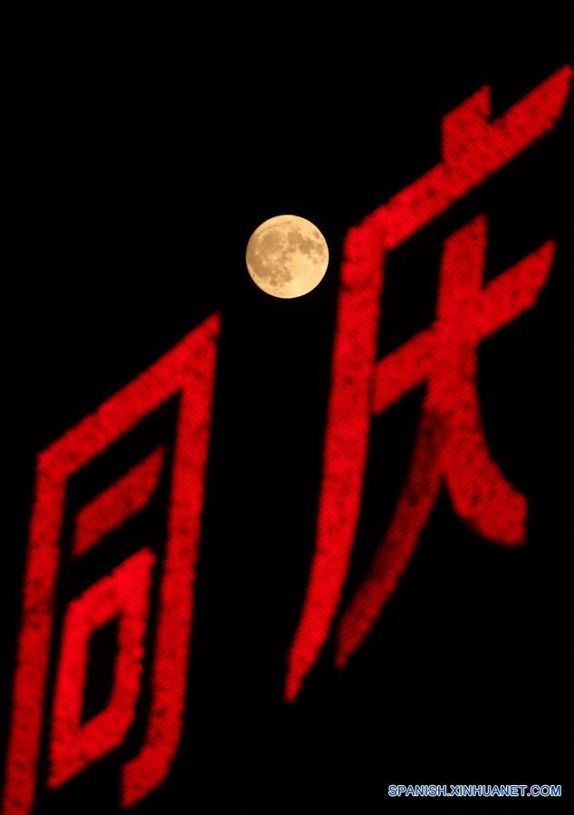 JIANGSU, septiembre 24, 2018 (Xinhua) -- Vista de la luna llena sobre Nantong, provincia de Jiangsu, en el este de China. El Festival de Medio Oto?o, que cae el 24 de septiembre este a?o, es un festival tradicional chino que tiene por costumbre la reunión familiar. (Xinhua/Xu Congjun)