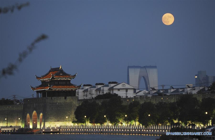 JIANGSU, septiembre 24, 2018 (Xinhua) -- Vista de la luna llena sobre Suzhou, provincia de Jiangsu, en el este de China, el 24 de septiembre de 2018. El Festival de Medio Oto?o, que cae el 24 de septiembre este a?o, es un festival tradicional chino que tiene por costumbre la reunión familiar. (Xinhua/Hang Xingwei)