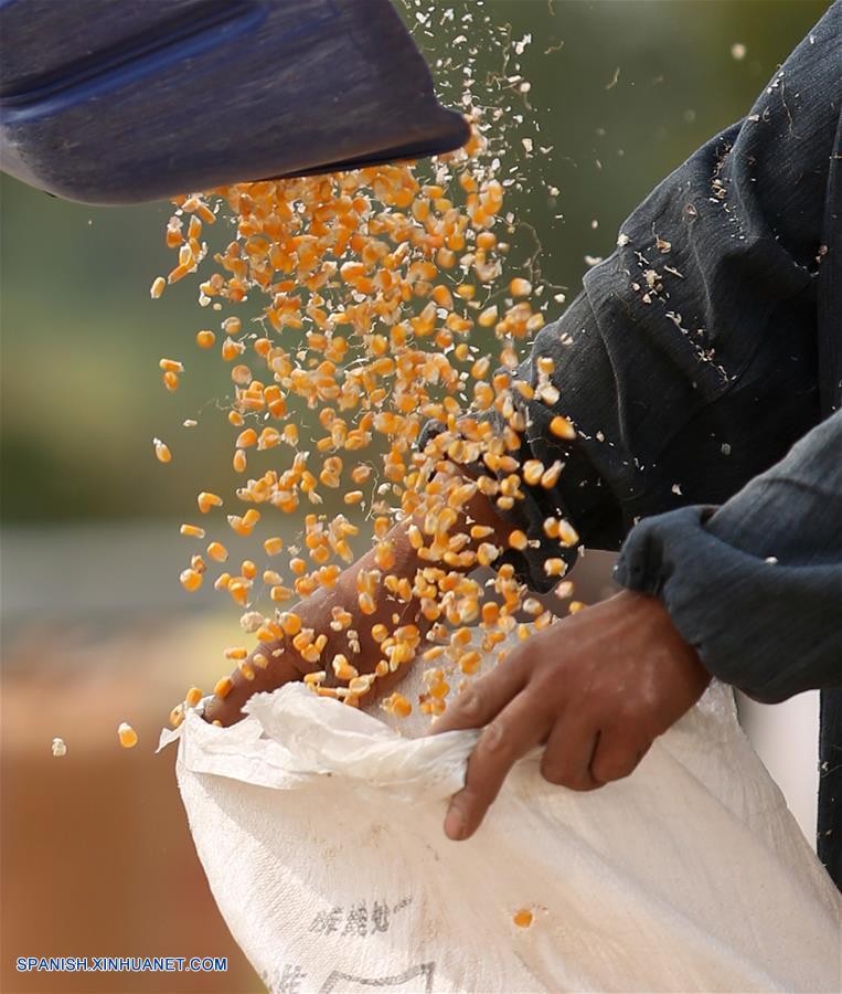 SHANDONG, septiembre 25, 2018 (Xinhua) -- Un residente empaca el maíz, en la villa de Hongshi de la ciudad de Linyi, provincia de Shandong, en el este de China, el 25 de septiembre de 2018. (Xinhua/Zhang Chunlei)