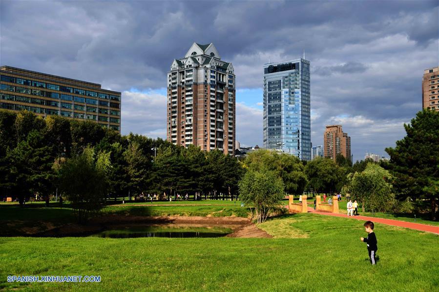 HEILONGJIANG, septiembre 25, 2018 (Xinhua) -- Un ni?o juega en el Parque Xiangjiang, en Harbin, provincia de Heilongjiang, en el noreste de China, el 25 de septiembre de 2018. El Parque Xiangjiang, renovado de un campo de golf, ha sido abierto gratis desde el martes al público. (Xinhua/Wang Jianwei)