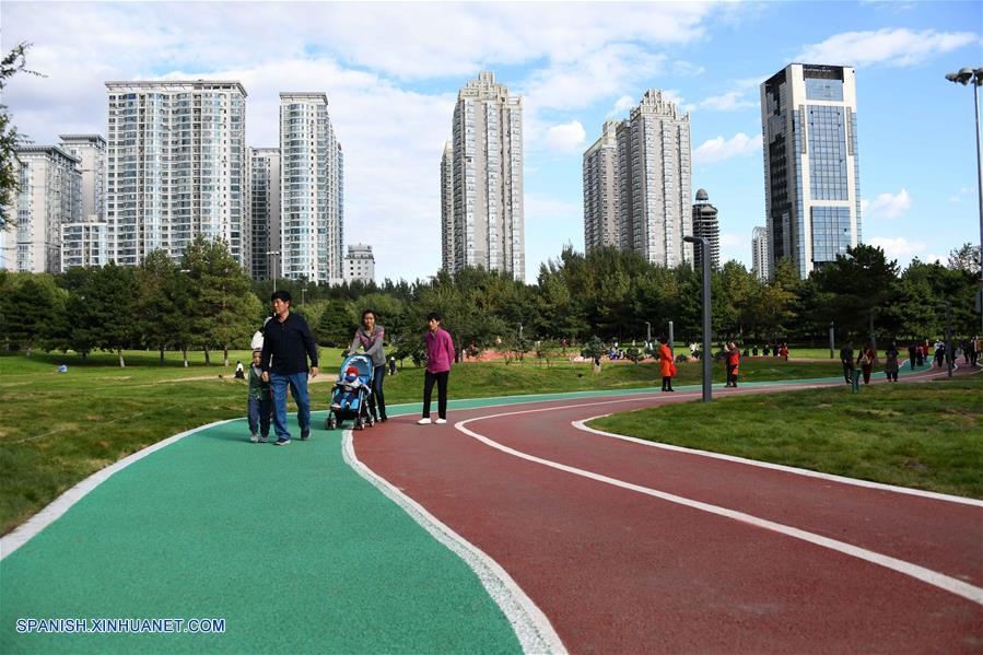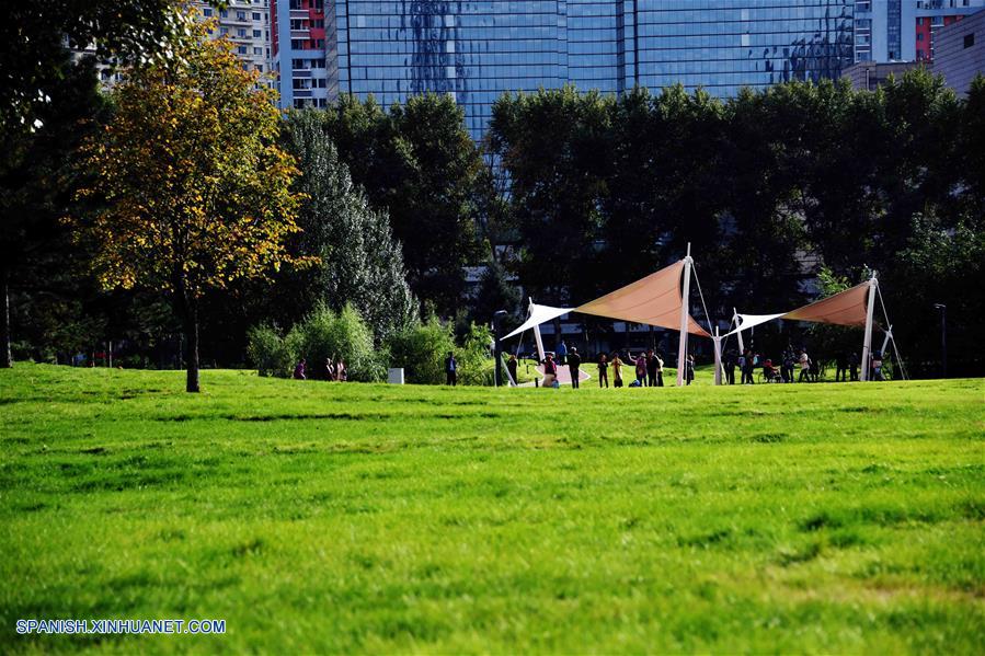 HEILONGJIANG, septiembre 25, 2018 (Xinhua) -- Ciudadanos acuden al Parque Xiangjiang, en Harbin, provincia de Heilongjiang, en el noreste de China, el 25 de septiembre de 2018. El Parque Xiangjiang, renovado de un campo de golf, ha sido abierto gratis desde el martes al público. (Xinhua/Wang Jianwei)