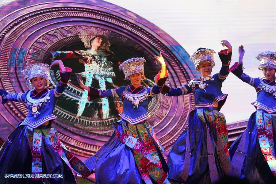 KATMANDU, septiembre 25, 2018 (Xinhua) -- Imagen del 24 de septiembre de 2018 de artistas realizando una actuación durante una celebración del Festival de Medio Oto?o chino 2018, en Katmandú, Nepal. La celebración fue organizada el lunes por el Centro de Cultura de China en Nepal en asociación con el Departamento Provincial de Cultura de Guizhou. (Xinhua/Sunil Sharma)