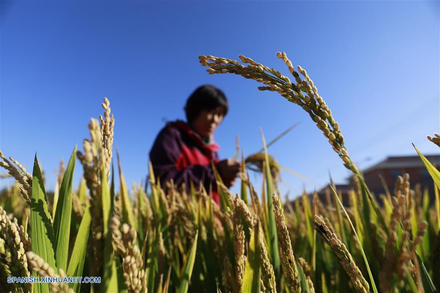 HEBEI, septiembre 25, 2018 (Xinhua) -- Imagen del 24 de septiembre de 2018 de una agricultora trabajando en los campos de arroz, en la villa de Shanligezhuang del municipio de Piaozhuang en la ciudad de Zunhua, provincia de Hebei, en el norte de China. (Xinhua/Liu Mancang)
